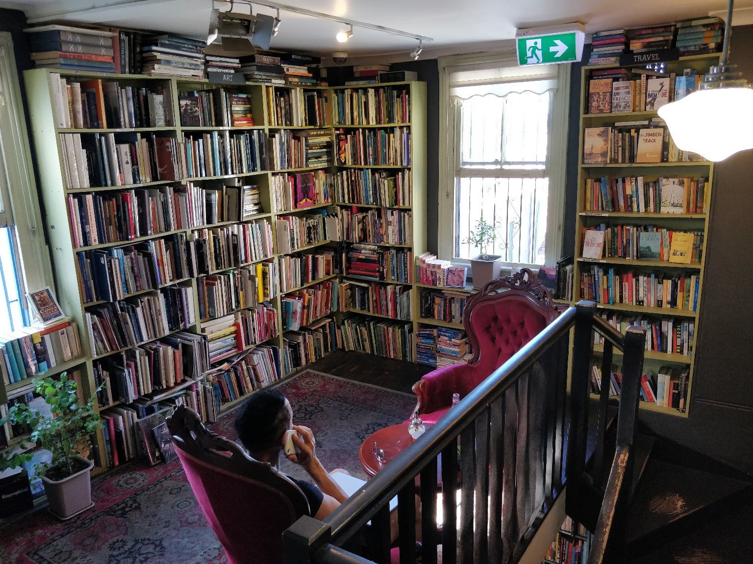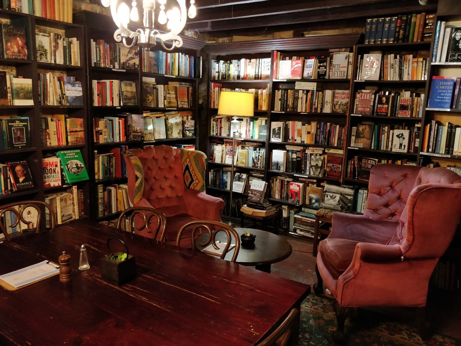 Кафе, совмещённое с книжным. Три этажа доверху заполненных книгами комнат. Можно сделать заказ, устроиться поудобнее в любой комнате с любой книгой и читать, сколько угодно. Если книга понравилась, можно и купить. Именно там нашёл и приобрёл книгу по религиям Африки.