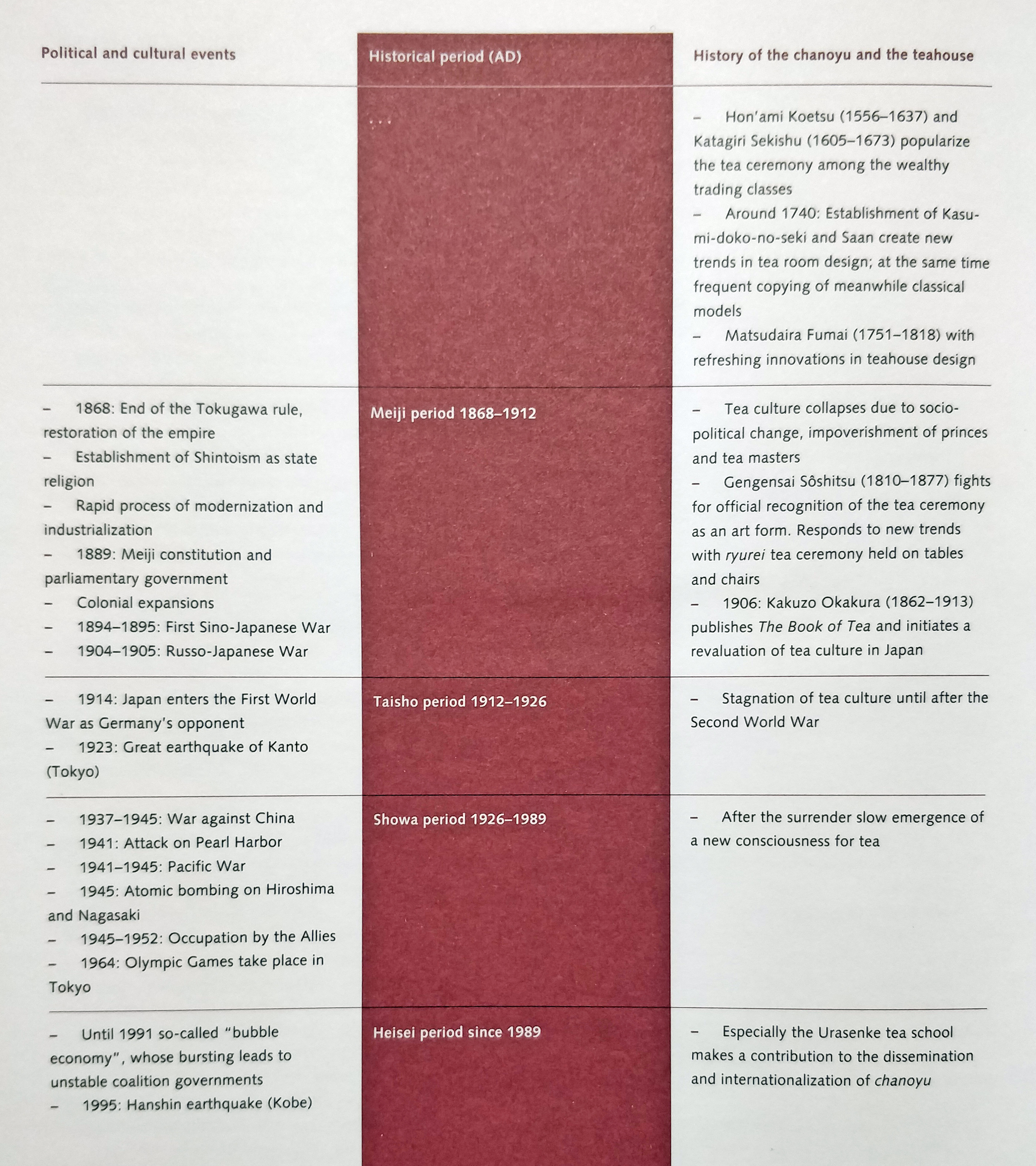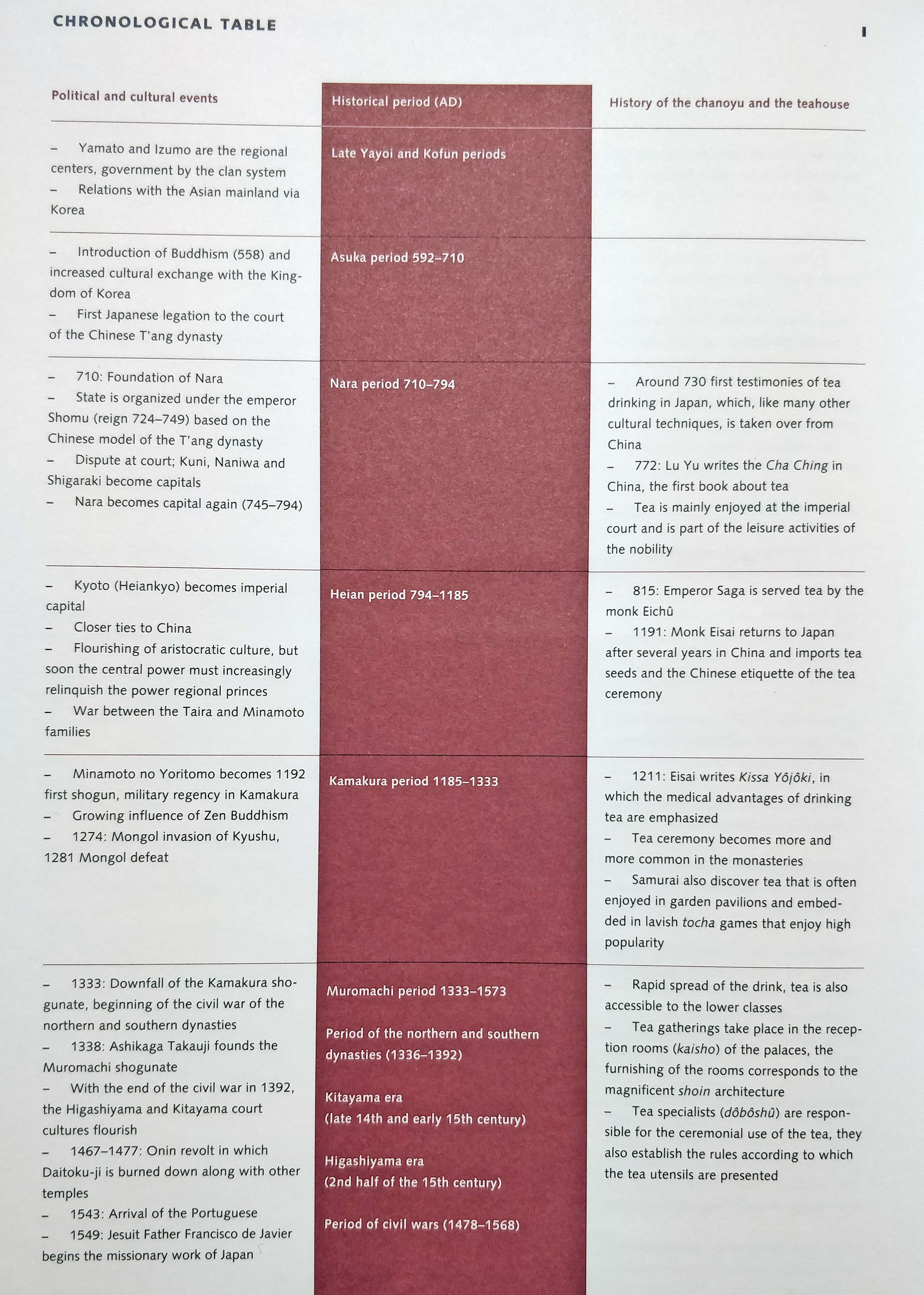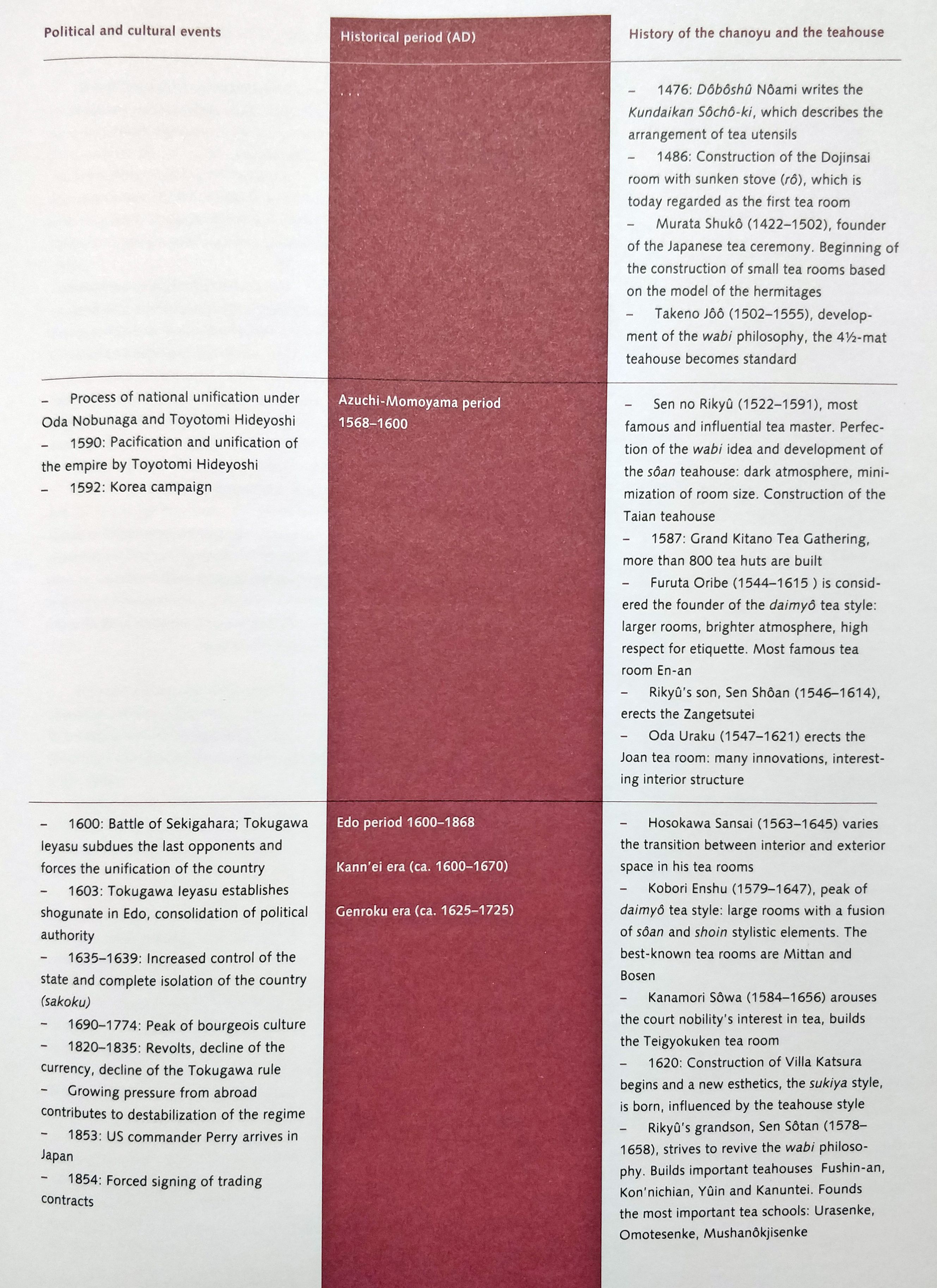 ***Полезнейшая табличка с хронологией из книги The Japanese Teahouse (Wolfgang Fehrer). Исторический период - политические и культурные события - японская чайная церемония.
